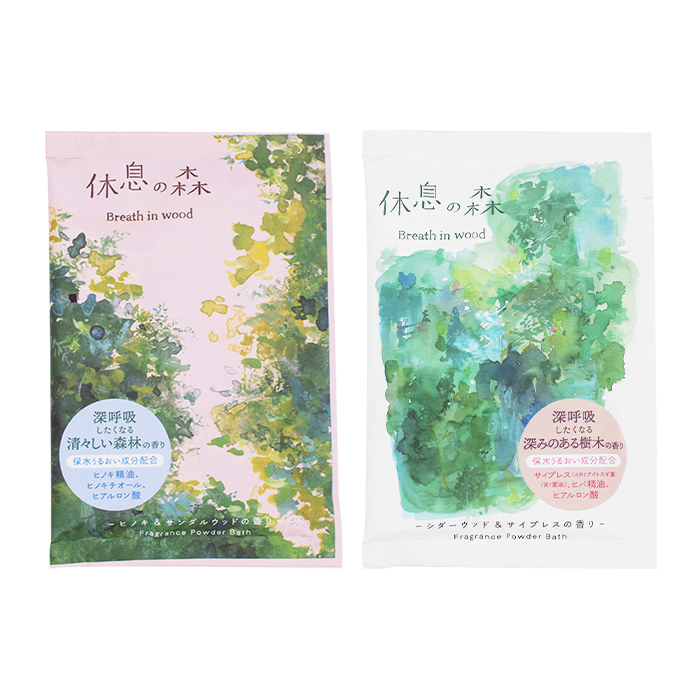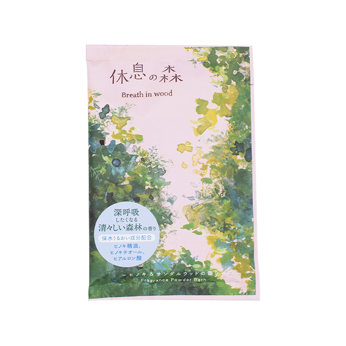 深呼吸したくなる香り成分ピネン※を配合したパウダーバス。森の香りに包まれるバスタイムを。